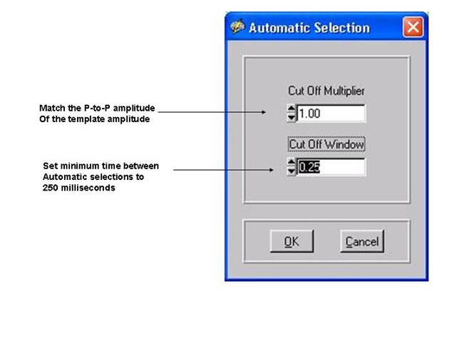 will be 50% larger amplitude than the template. The Cut Off Window is the delay between automatic